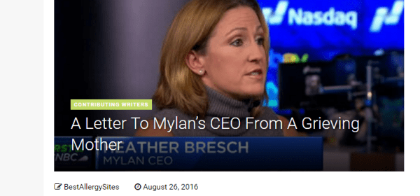 “Best Allergy Sites” Our site made it ! We have been featured on ” Best Allergy Sites” ! A Letter To Mylan’s CEO From A